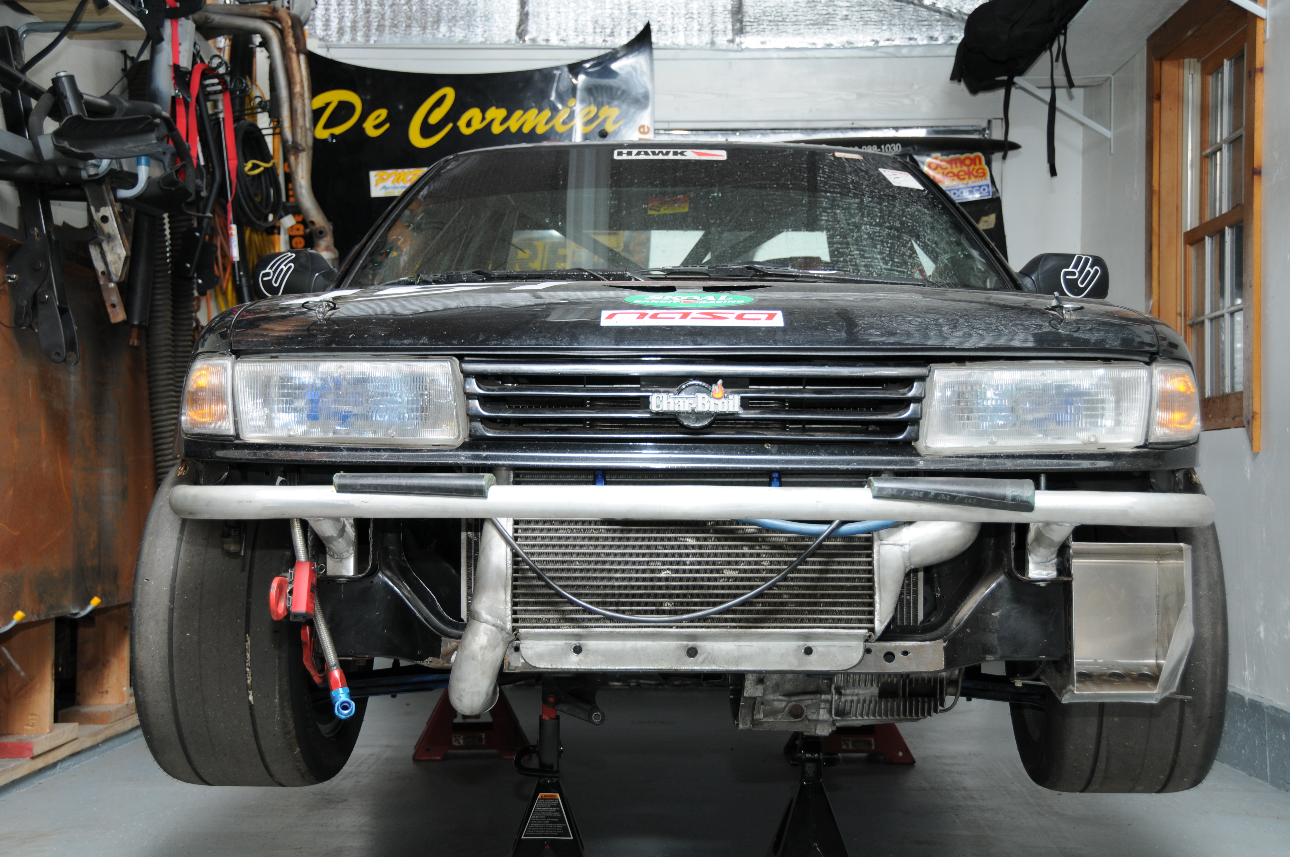 SE-R, SR20VVL, centrifugal supercharger, PAR dog-engagement tranny, 15 x 9 wheels with 275/35-15 Hoosiers, lots of downforce-inducing aero bits.  😀 😀