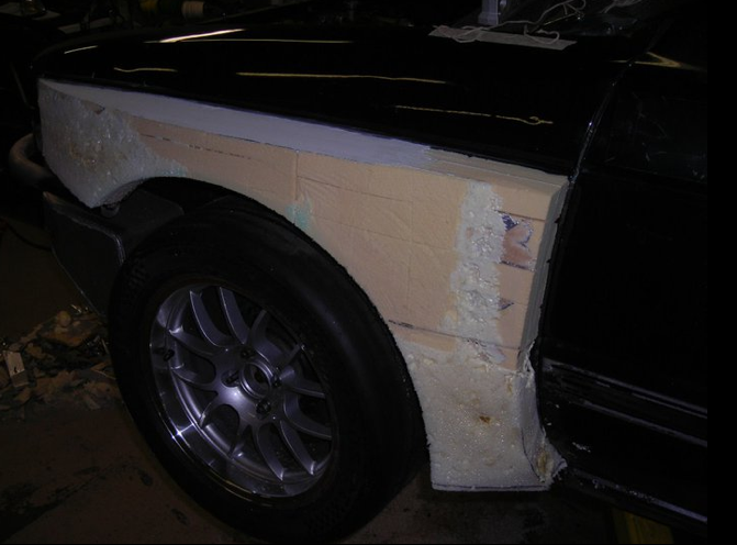Well the build continues! Bob is up to his tricks and creations. Below is the begining of the templete that will be used to make the front fender flares on the Sentra.